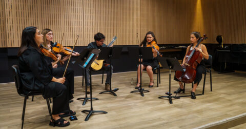 El ensamble de cuerdas y la dupla de guitarristas ofrecerán un concierto gratuito este martes 21 de abril (19:30 horas), en el Teatro Aula Magna, donde interpretarán obras de autores como Fernanda Carrasco, Katherine Bachmann y “Chicoria” Sánchez. El evento será presentado por la Fundación Guitarra Viva Ernesto Quezada, que cuenta con financiamiento del Ministerio … Sigue leyendo Cuarteto Austral, Nicolás Acevedo y Miguel Álvarez presentan un panorama de música chilena en la Usach