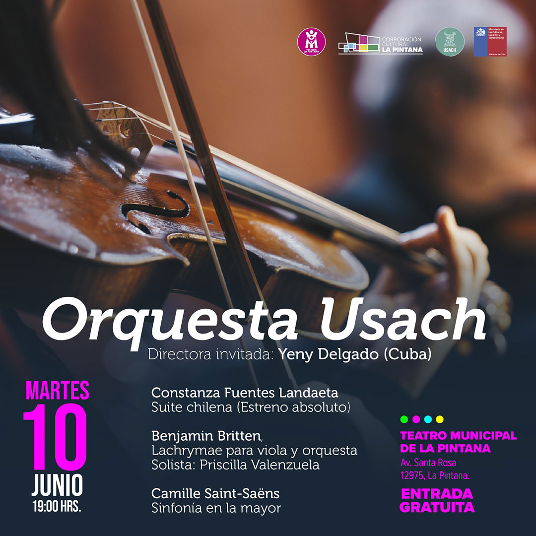Bajo la dirección de Yeny Delgado, la agrupación estrena una de las obras ganadoras de su I Concurso de Compositoras: Suite chilena, de Constanza Fuentes Landaeta (1991). Luego, con la solista Priscilla Valenzuela, interpreta Lachrymae, del compositor inglés Benjamin Britten (1913-1976), y la Sinfonía en la mayor del compositor francés Camille Saint-Saëns (1835-1921).