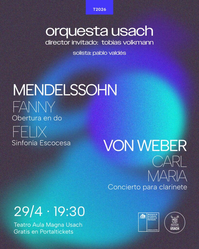 Estos cruces y contrastes serán patentes en el tercer programa de la temporada 2026 de la Orquesta Usach, que se iniciará con la Obertura en do, esa única partitura orquestal de Fanny Mendelssohn, y culminará con la Sinfonía nº 3 en la menor, Op. 56 de su hermano, popularmente conocida como la sinfonía “Escocesa”.