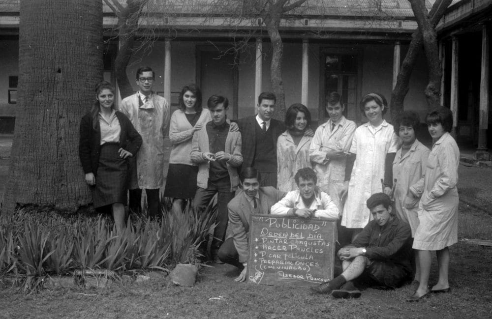 1965. Mario Navarro junto a compañeros y compañeras de Pedagogía en Publicidad, Dibujo y Caligrafía del Instituto Pedagógico Técnico (UTE).