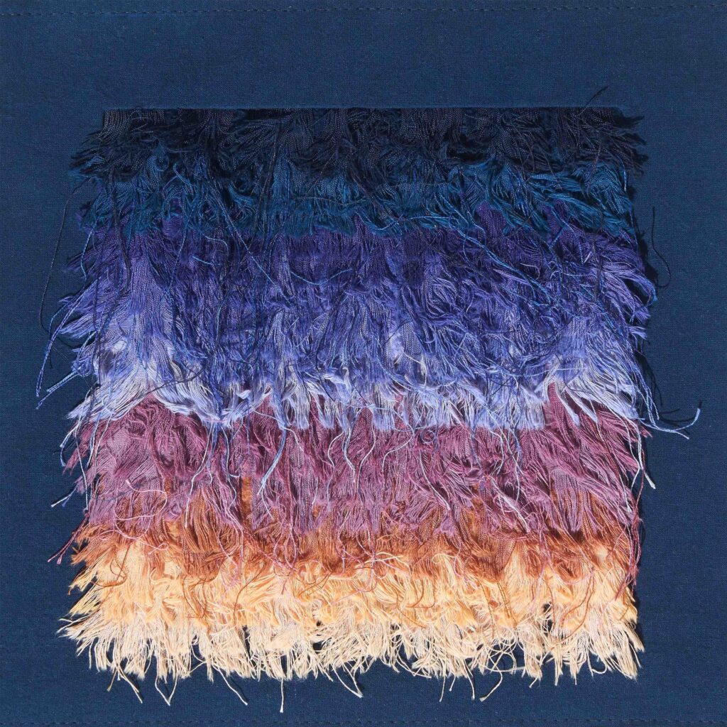 En este caso, trabajó en una pieza compuesta por 119 tiras teñidas, deshiladas y unidas a mano, con doce colores que conforman una imagen alusiva a la degradación de la luz. En total, tuvo que fabricar más de mil tiras para las primeras diez copias del disco. Los otros ejemplares del disco son distribuidos con una caja también fue diseñada por ella.