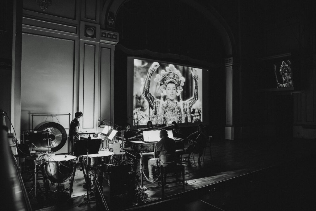 “Siempre había querido trabajar con películas”, dice la compositora y artista visual establecida en Austria, quien dio vida a una partitura para un cuarteto de contrabajo, trompeta, trombón y percusión, acompañado por un cantante. Acostumbrada al diálogo entre música y otras disciplinas, el encargo que recibió de la Usach le permitió trabajar de una manera distinta: “Lo que hizo particularmente cómodo este proyecto fue la libertad con la que pude trabajar, desde la instrumentación que podía ocupar en adelante. Podía hacer una canción entre medio de la película y también efectos sonoros de la música contemporánea, sin necesidad de dar una explicación. Disfruté esa libertad”.
