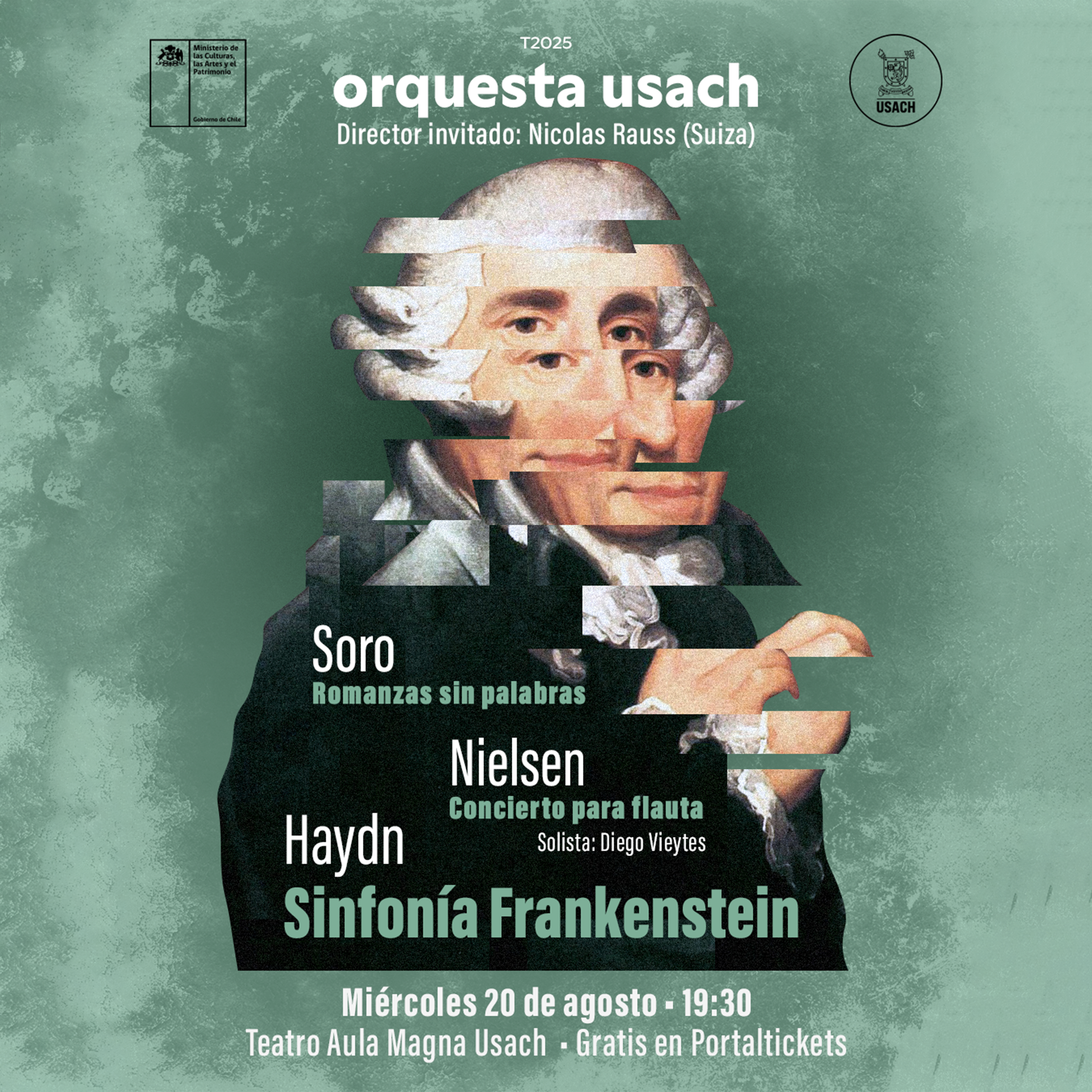 Esos dos mundos distantes, sin embargo, se van a cruzar en el próximo programa de la Orquesta Usach, que tendrá como principal eje la “Sinfonía Frankenstein” de Haydn. Encabezado por el director suizo Nicolas Rauss, el concierto tendrá una única función, que se realizará el miércoles 20 de agosto (19:30 horas) en el Teatro Aula Magna Usach, para la cual ya se pueden descargar entradas gratuitas en el sistema Portaltickets.